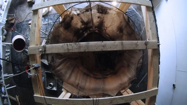 This project at Griffis Sculpture Park features three large concrete rings, each with openings ranging from 6 to 8 feet wide, allowing people to inhabit them. The rings are arranged in a linear sequence, creating a tunnel-like effect. Ingeniously aligned with the winter setting sun, this installation offers a mesmerizing visual experience. Crafted using burlap fabric formwork, the concrete is aerated for a lighter composition. The interior surfaces are coated with photoluminescent powder, absorbing sunlight to emit a captivating glow at night.